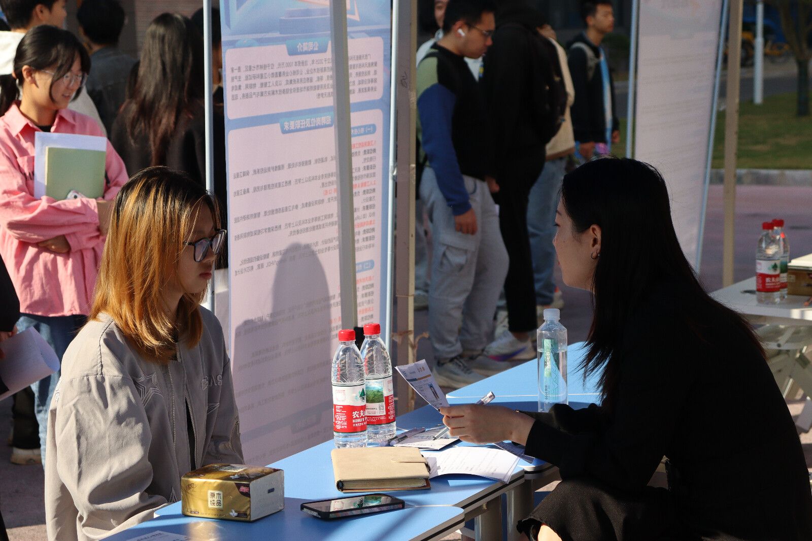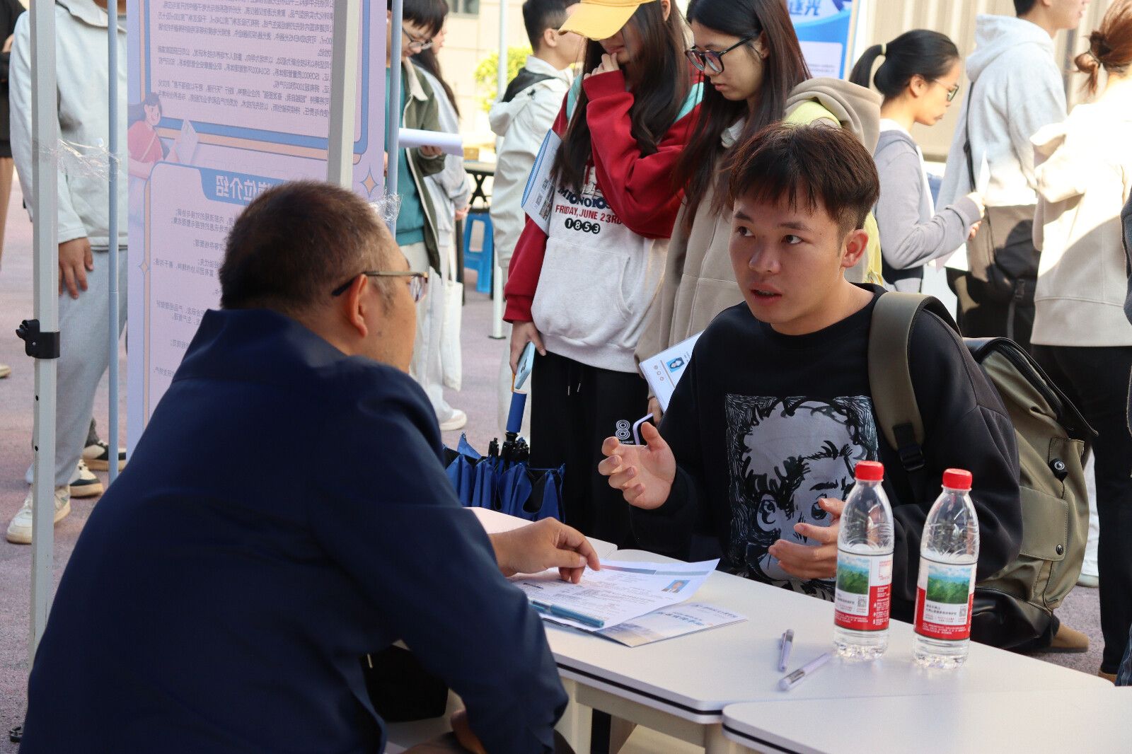 招聘会现场气氛热烈,秩序井然。毕业生们带着精心准备的简历,穿梭于各企业展位前,与企业招聘负责人面对面交流,详细咨询岗位职责、任职要求、薪资待遇、职业发展路径等问题。企业招聘人员耐心解答疑问,全面介绍企业发展历程、业务布局、企业文化及招聘需求。同时,学院就业指导老师也在现场为毕业生提供简历优化、求职技巧指导等服务,助力毕业生提升求职成功率。